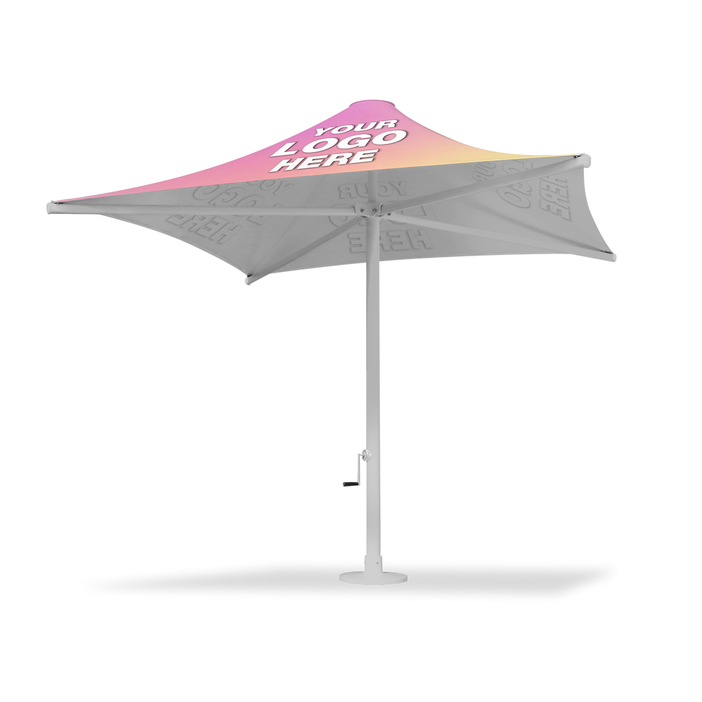 The 3.5m x 3.5m Custom Ferrara 300 Series PVC Umbrella is built for businesses that need reliable shade and bold outdoor branding. Featuring a corrosion-resistant aluminium frame and custom-printed PVC roof, it performs in tough weather while elevating hospitality and promotional spaces. Installation available Australia wide, contact us now!
