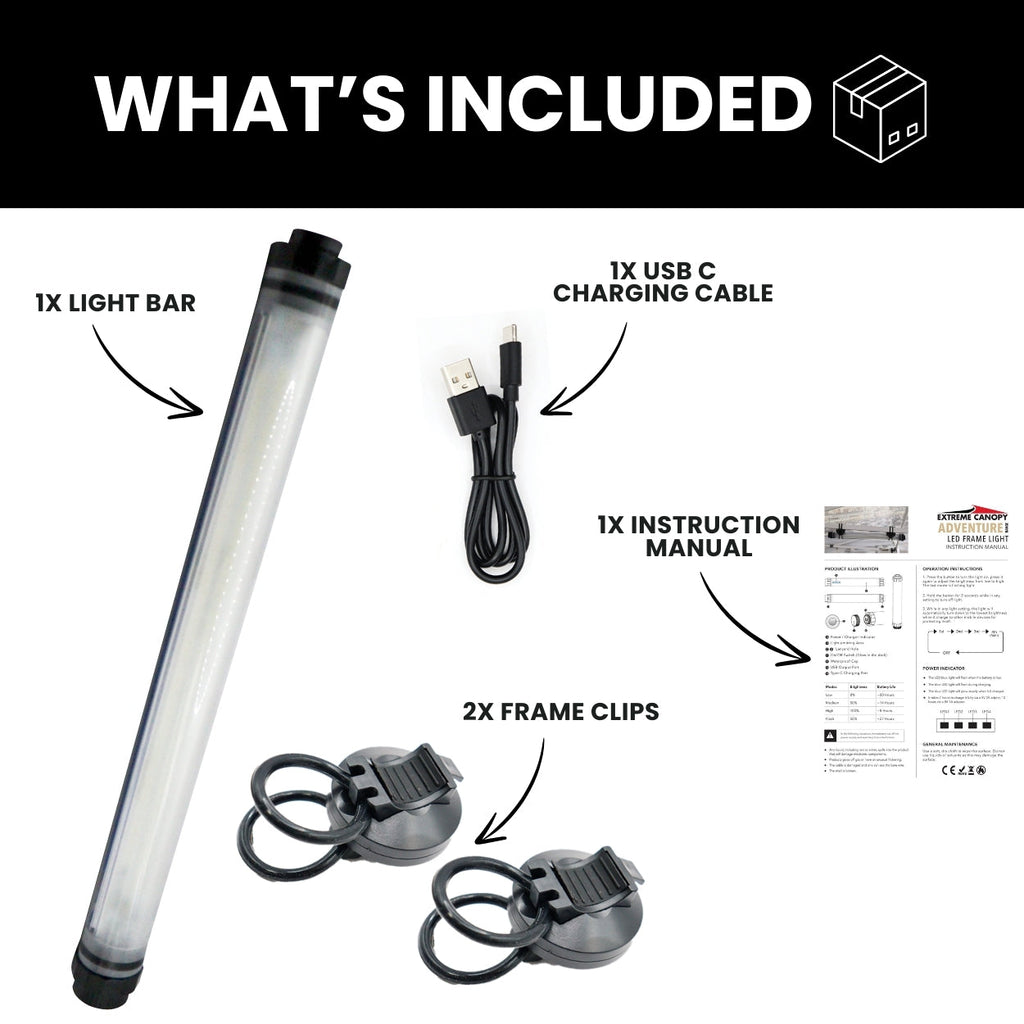 Package Includes: LED light bar, 2 mounting clips, charger cable and 2 wrist cord straps