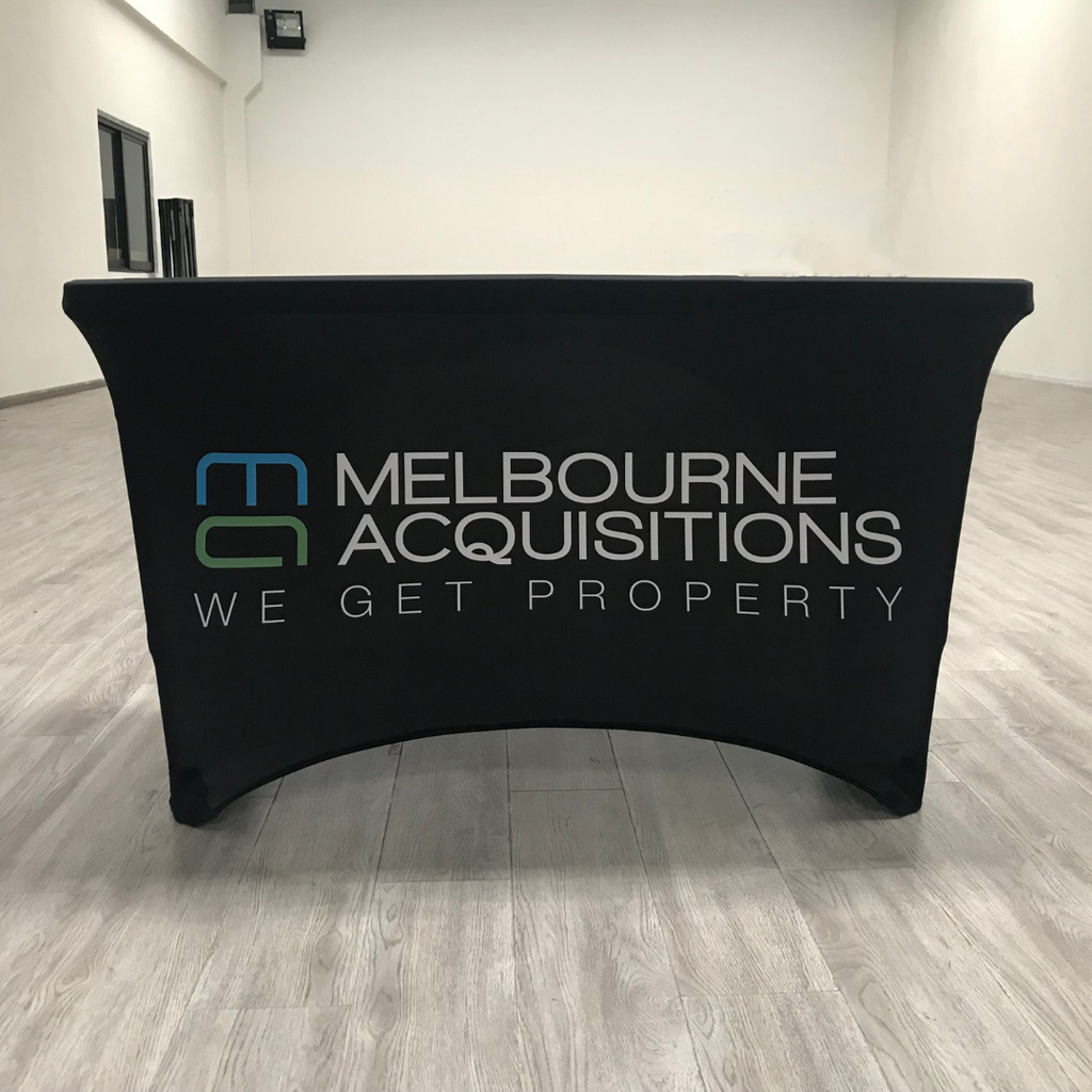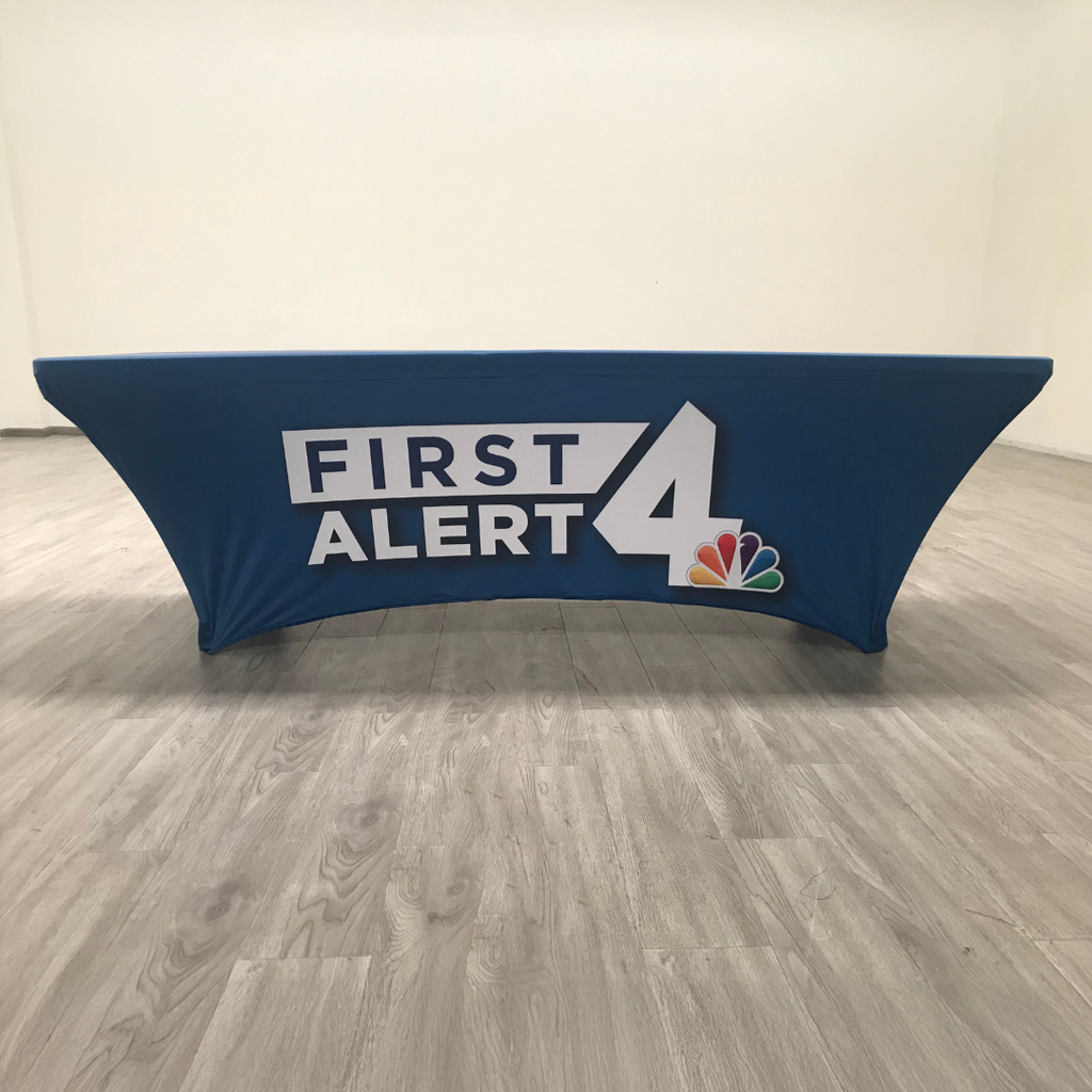 Package Includes: Custom printed 229g/sqm stretch fabric table cover